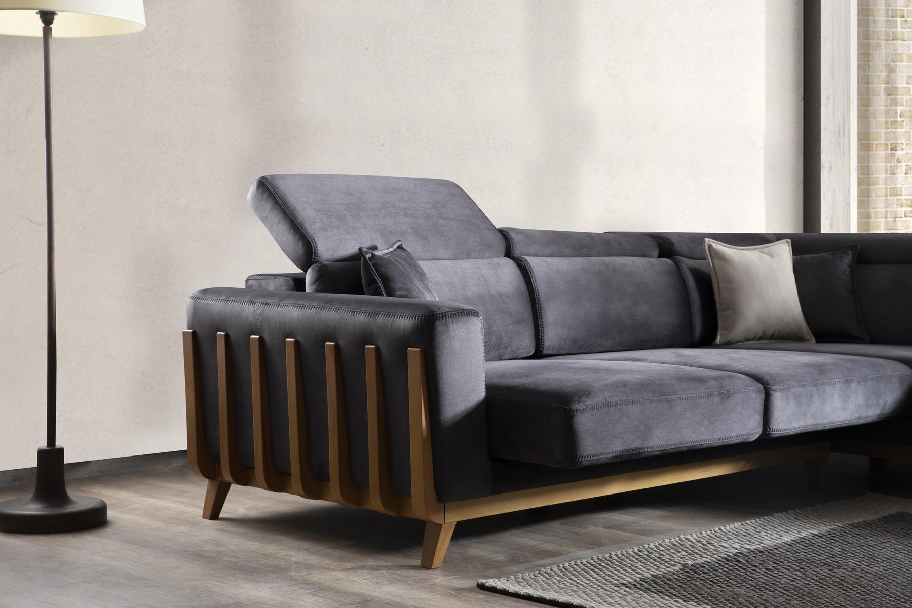 ソファベッドは電動コントローラーでシートが前方へ25 cm 拡張されます。